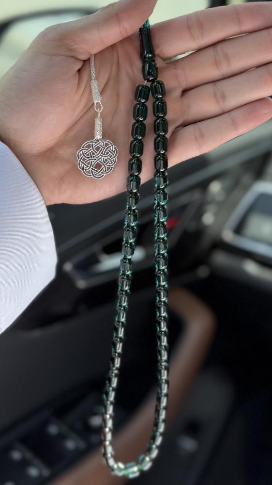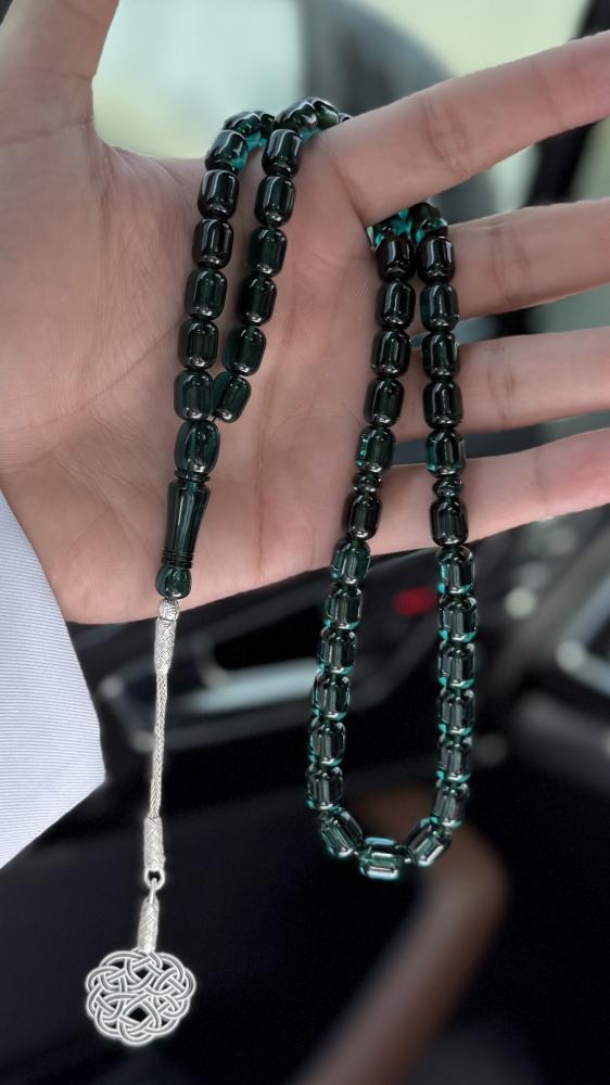 سبحة زعفران مصنوعة من خامة إيرانية مع مزيج من الزعفران ذات رائحة فواحة عند الاستخدام ،مخروطة يدويا بجودة عالية، مسباح رسمي وفخم للإهداء والمناسبات عليها طربزونة تركية من الفضة مما يعطي السبحة جمال وفخامة.